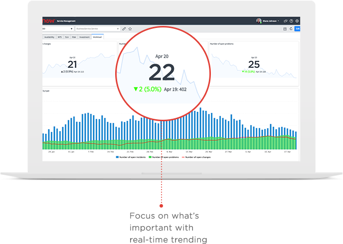 Dashboards provide consistent and actionable information for service demand, service‑level compliance, and other key performance indicators.