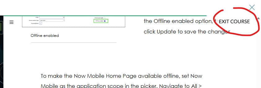 I have attached two screenshots. One of them shows the Exit Course button hovering over the course content. It's distracting, reduces the amount of space available for content and isn't consistently located with the rest of the course interface such as request an instance and request expiry extension.