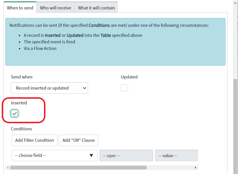Como o objetivo é enviar um e-mail quando um registro for criado, está fácil de resolver esta aba.