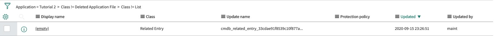 This adds your related entry record to your application by default. The example related entry record shows the application as Tutorial 2.