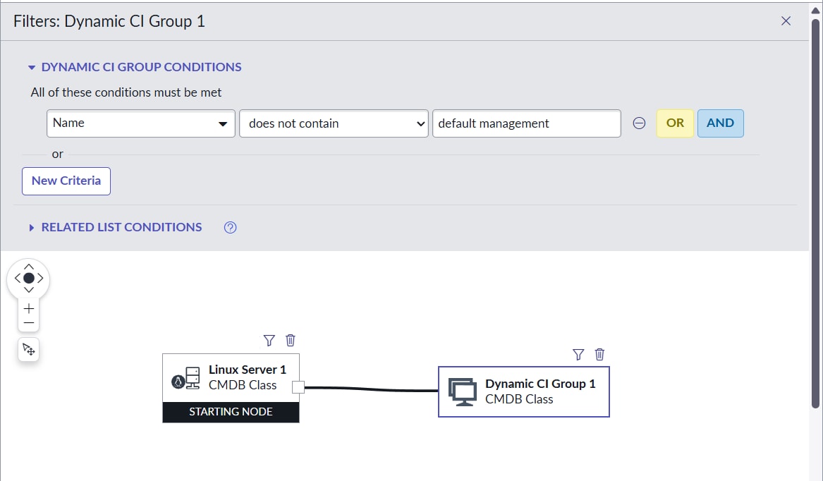 Extra requirement, if the CI is then contained in another Dynamic CI group, the CI should be removed automatically from this Dynamic CI Group of "default management".