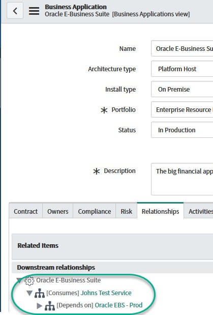 - Voila - now your new app service has the correct references in 'svc_ci_assoc' and is dependent on the app service you selected. If you perform a change on your main platform host CI, your 'module' will be pulled in as an impacted service.