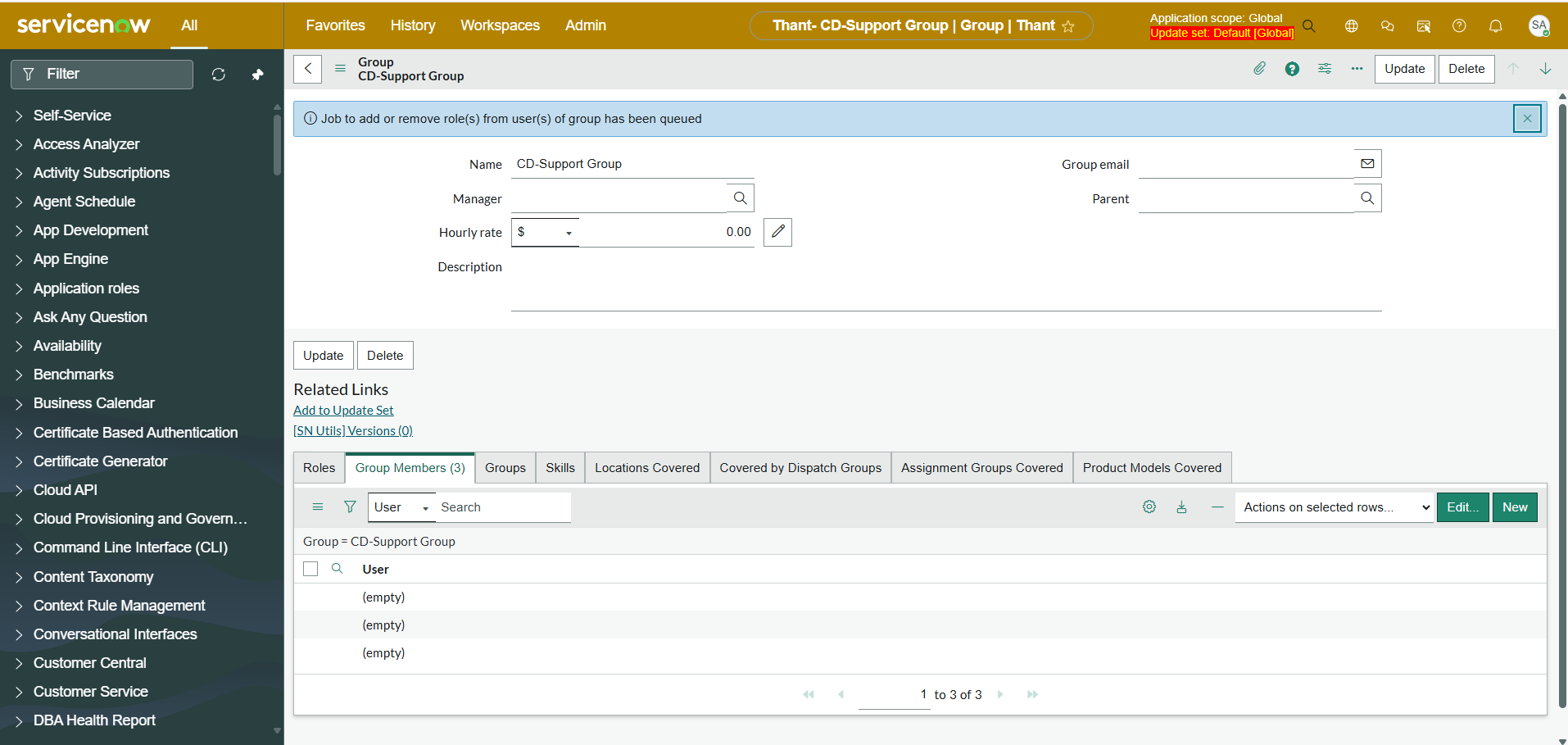 I have tried to resolve this issue by deactivating my custom the Script Include and Business Rules related to sys_user and sys_user_group as well as clearing some caches however nonetheless could resolve the issue.