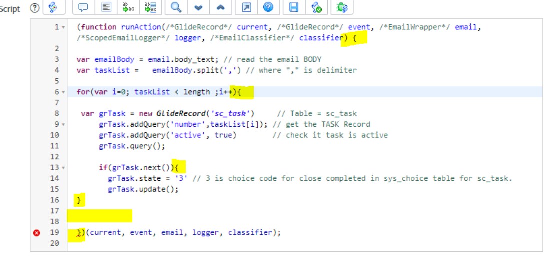 Am trying to change the status of A task ticket for example ( TASK12345) from open to close completed using inbound email action.