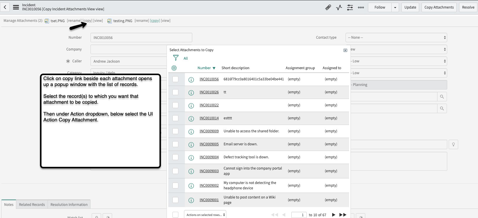 Once this is done, you shall see a link Copy beside each attachment in your incident record as you see below.