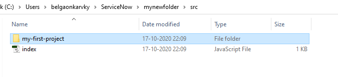 C:\Users\mypc\servicenow\mynewfolder>now-cli project --name myfirst-project --scope x_myorg_helloworld --offline