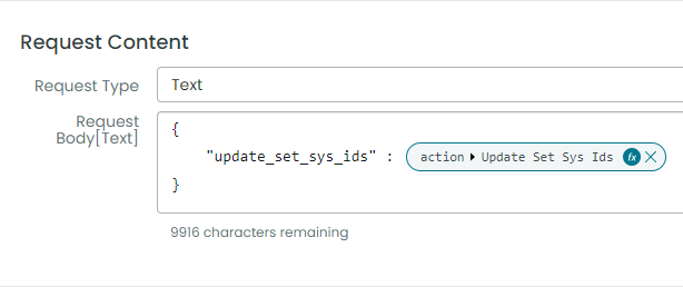 You might discuss on the input of the "Update Set Sys Ids". How are these provided? Will this be a string, with comma-separated Sys Ids? Or will this be an array object? The Request Body does expect an array object. For the "Execute Update Sets" spoke we worked on, we choose a string. In that case, you would need to apply some Pre Processing on the "Update Set Sys Ids" or apply a Transform Function, like splitting the string so it becomes an array object.