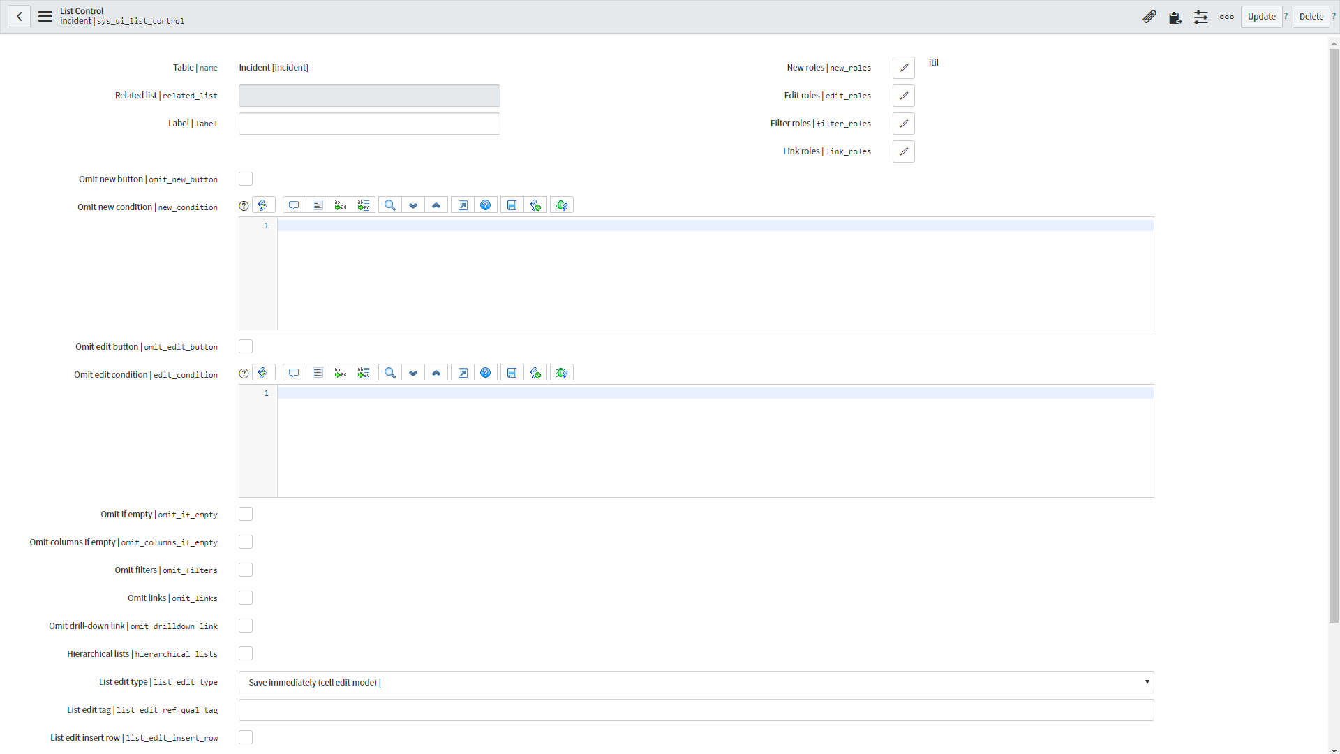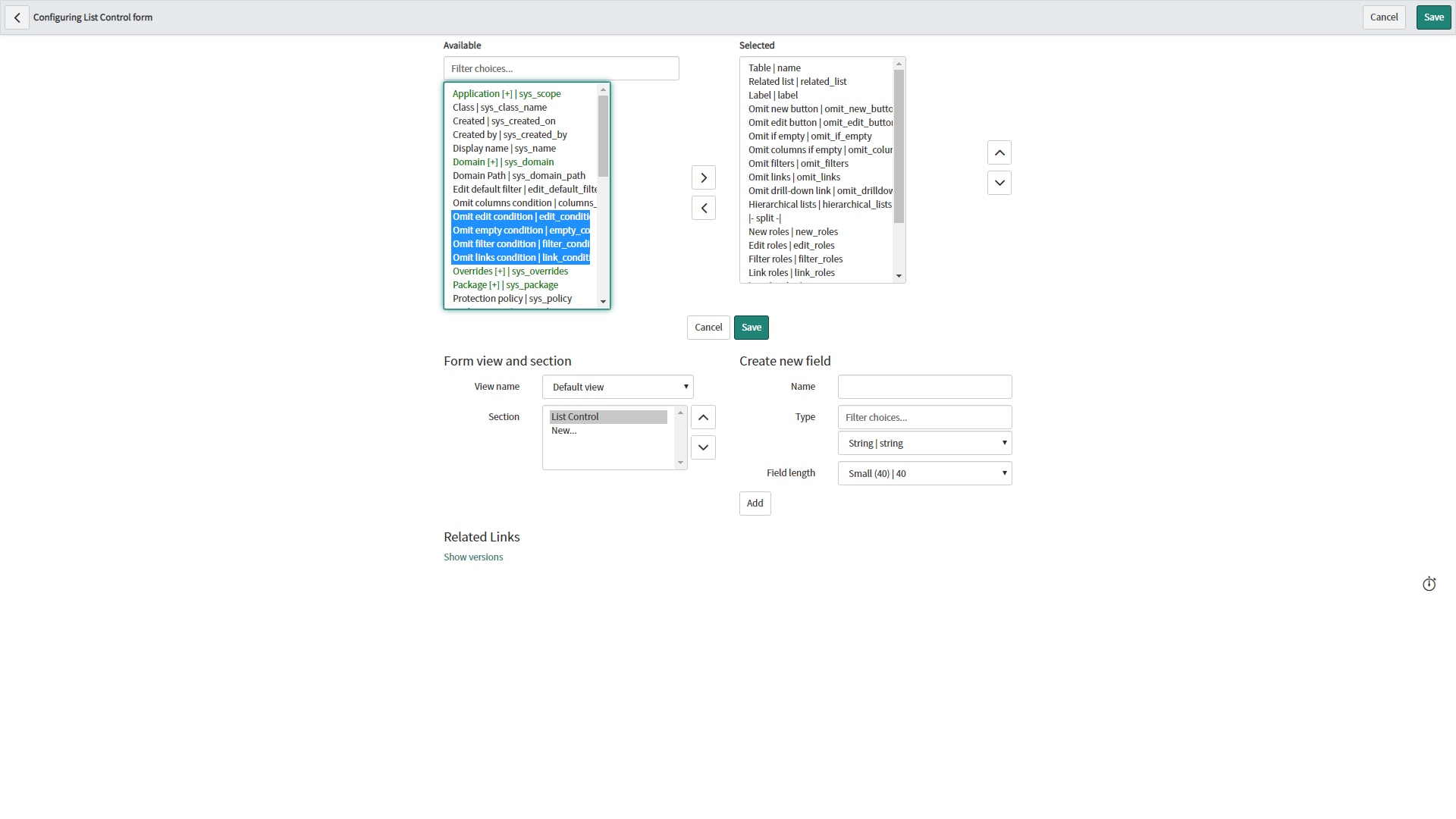 Note: Be aware that changing the form layout does affect future patches/upgrades. If a change by ServiceNow might be done on the List Control form lay-out, this will result in a Skipped Update.