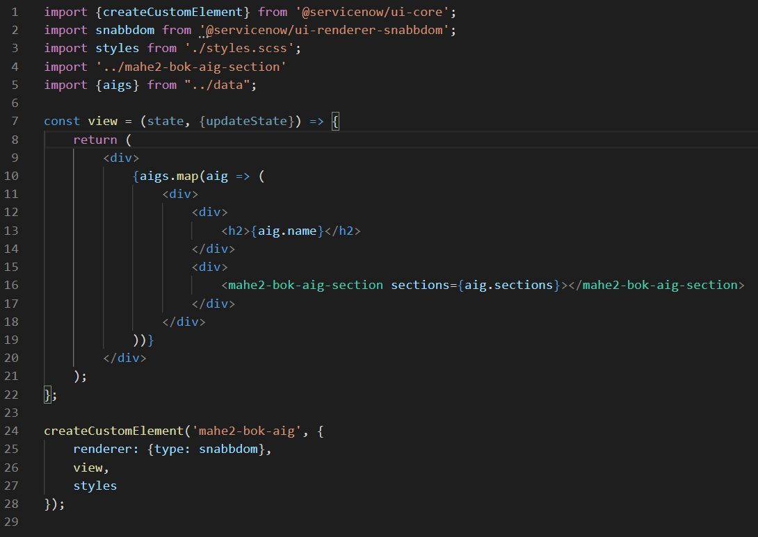 Ok so now I have a picture so lets get some data from a file and display it, I will deal with getting it from the instance later. So I built this code and tried to understand the formatting that I had not seen before. Been working in the ServiceNow server side bucket a little to long I think.