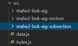 So I started with a basic component that would have a sub component which in turn would have another sub component. The basic structure is that I have an AIG, under that I have a section and under that I have a subsection and finally I have data. To start with I created a file with some data in it for testing. Below is a sample of the data in my data.js file.
