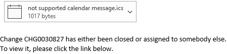 After wasting too much time on this problem, I decided to share with the community the solution I used to correct the "not supported calendar message.ics" bug.