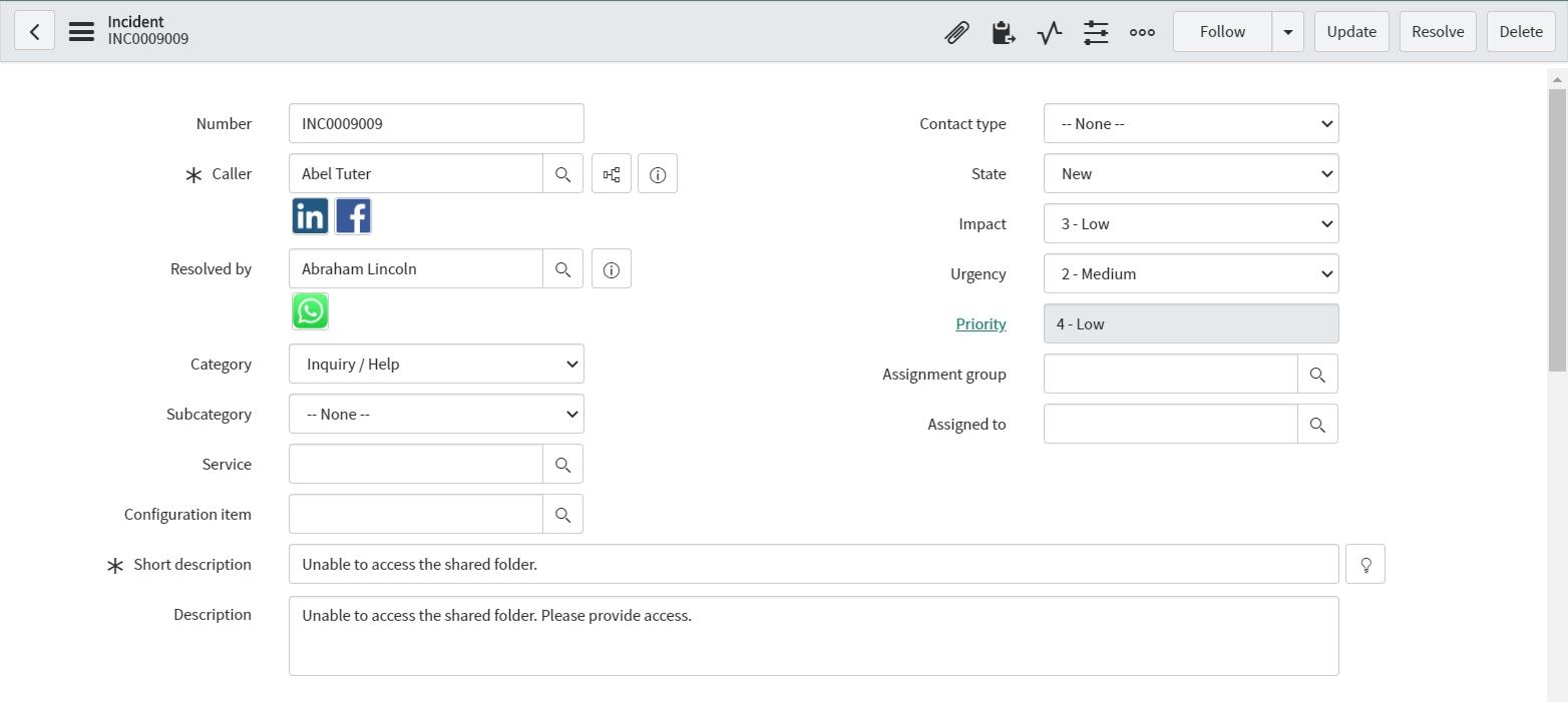 ServiceNow Application allow administrators to add social links feature to the user reference fields on form level.