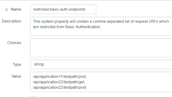 - Value: comma separated list of endpoints you want to restrict from Basic Authentication.