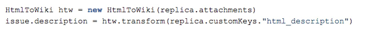 This functionality can be used, by adding HtmlToWiki.groovy to the classpath on your Jira side. This can be for instance <jirahome>/scripts.