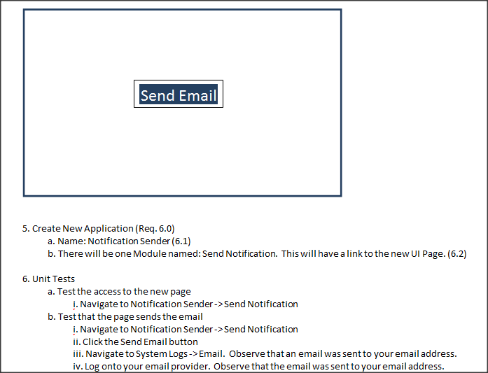i. Detail these out. These will include what is being tested for (the requirement), and the steps to produce the test. Expected results.