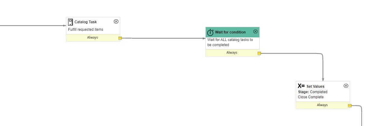 Looking for a business rule that if an ad hoc task is added that it will wait for all tasks to be close completed, closed incomplete, closed skipped and then the RITM will change the stage to Completed and state to Close Completed. See attached code I found and doesn't seem to work. Any help is much appreciated.