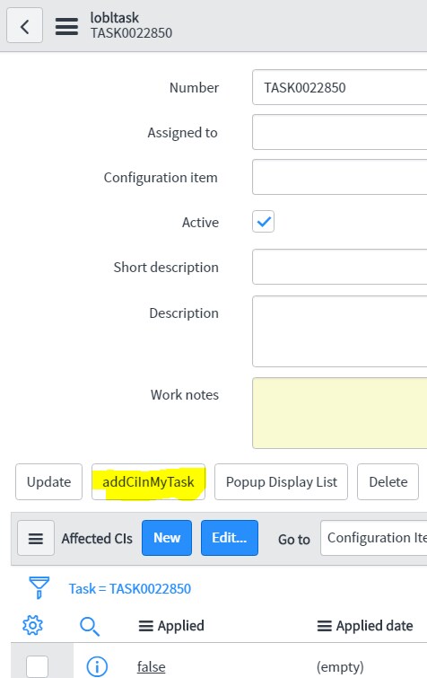 The code in "addCiInMyTask" UI Action can be: