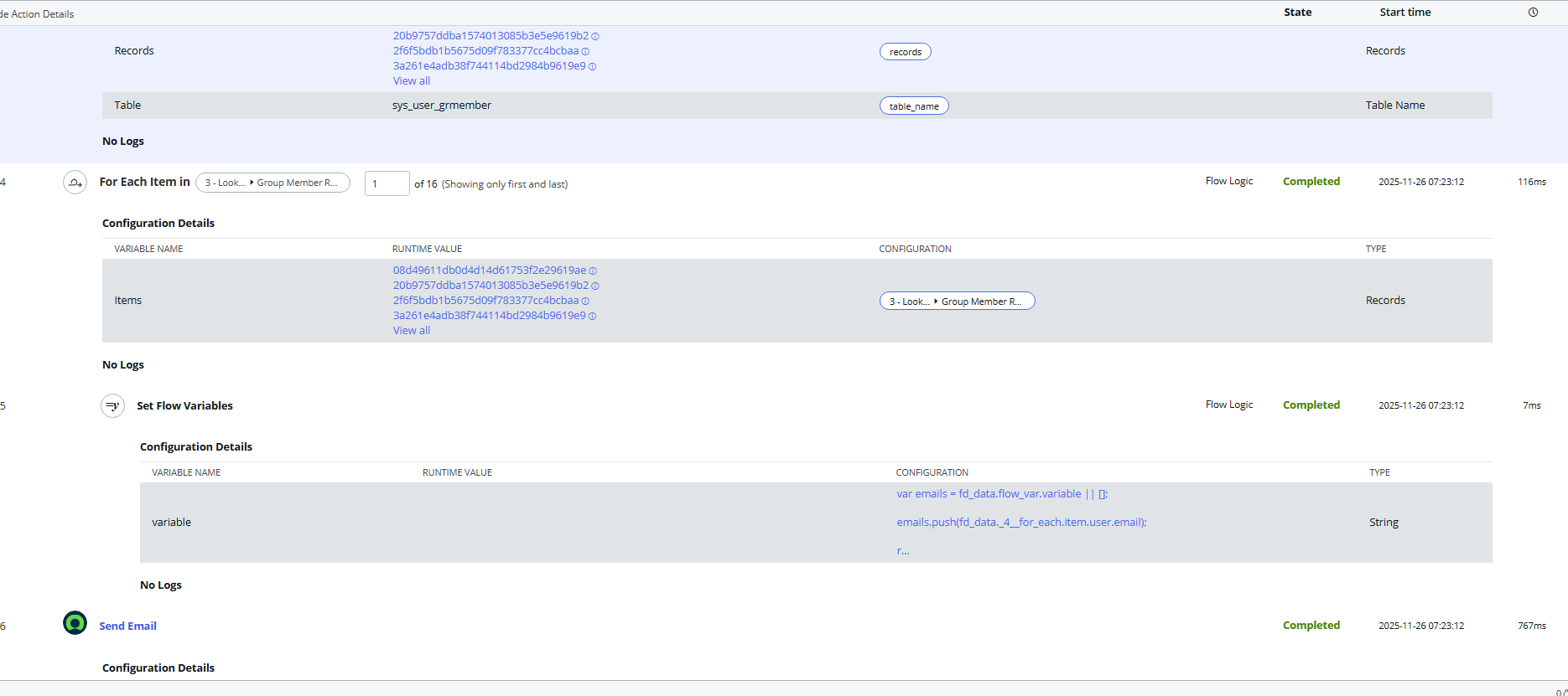 Use-Case: Every Monday morning, each assignment group should receive one consolidated email containing all incidents assigned to their group. Additionally, all users belonging to that group must be added to CC. Built purely using just Flow Designer steps
