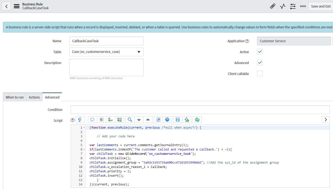 Thanks! One more question before I create the BR. If I want the 'Assigned To' field to be blank/empty, do I need to configure that? Or just not include it in the script?
