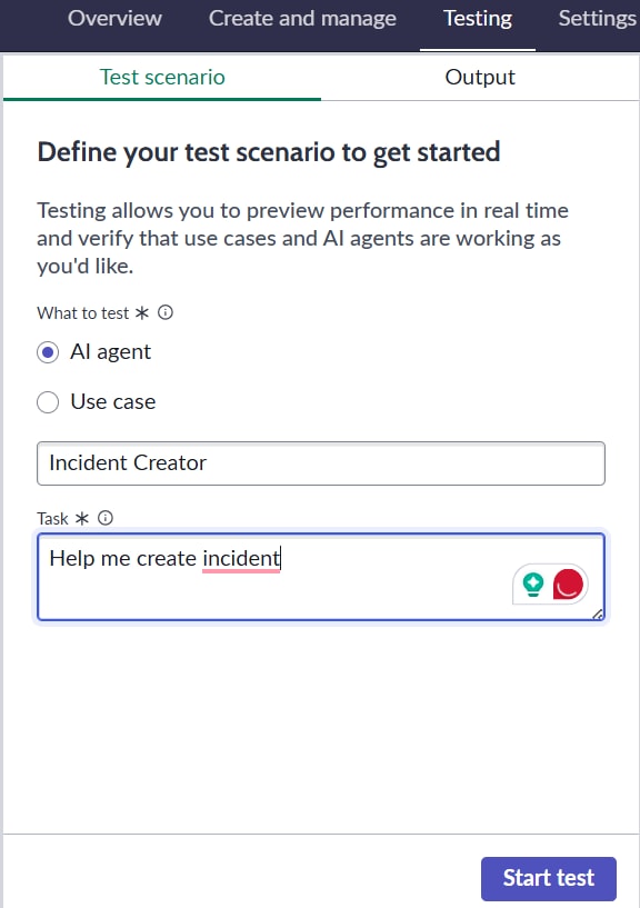 - Description: An AI Agent that creates incidents based on user input