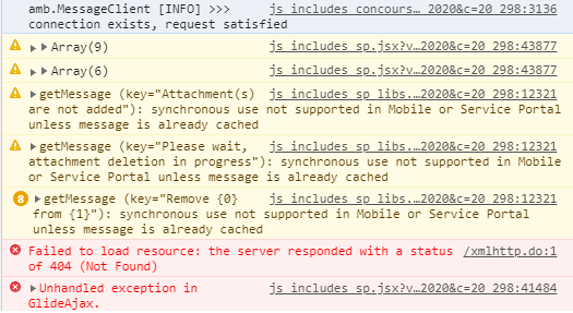 getMessage (key="Attachment(s) are not added"): synchronous use not supported in Mobile or Service Portal unless message is already cached