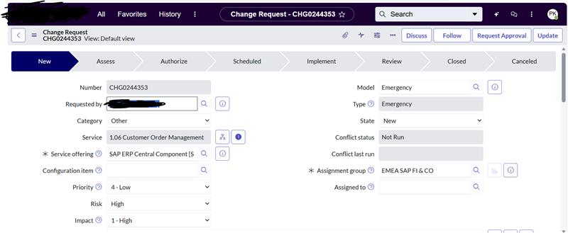 Also check the Workspace Experience configuration under Service Operations Workspace → Administration → Workspace Configuration to confirm SOW is set as the preferred experience for the Change Management application.
