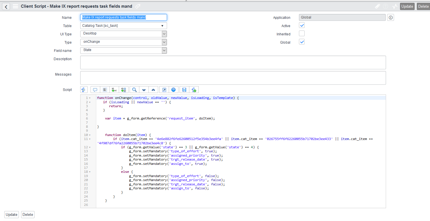 I have created a client script that will make certain fields on my form mandatory when the state of the Task change to either Close Complete or Closed Incomplete. But upon testing I noticed that if I click the close task button while the state is Open or Work in Progress - it will Close the Task and never make those fields mandatory and stop the task from being closed. Is there something that I can include in the client script that I currently have.