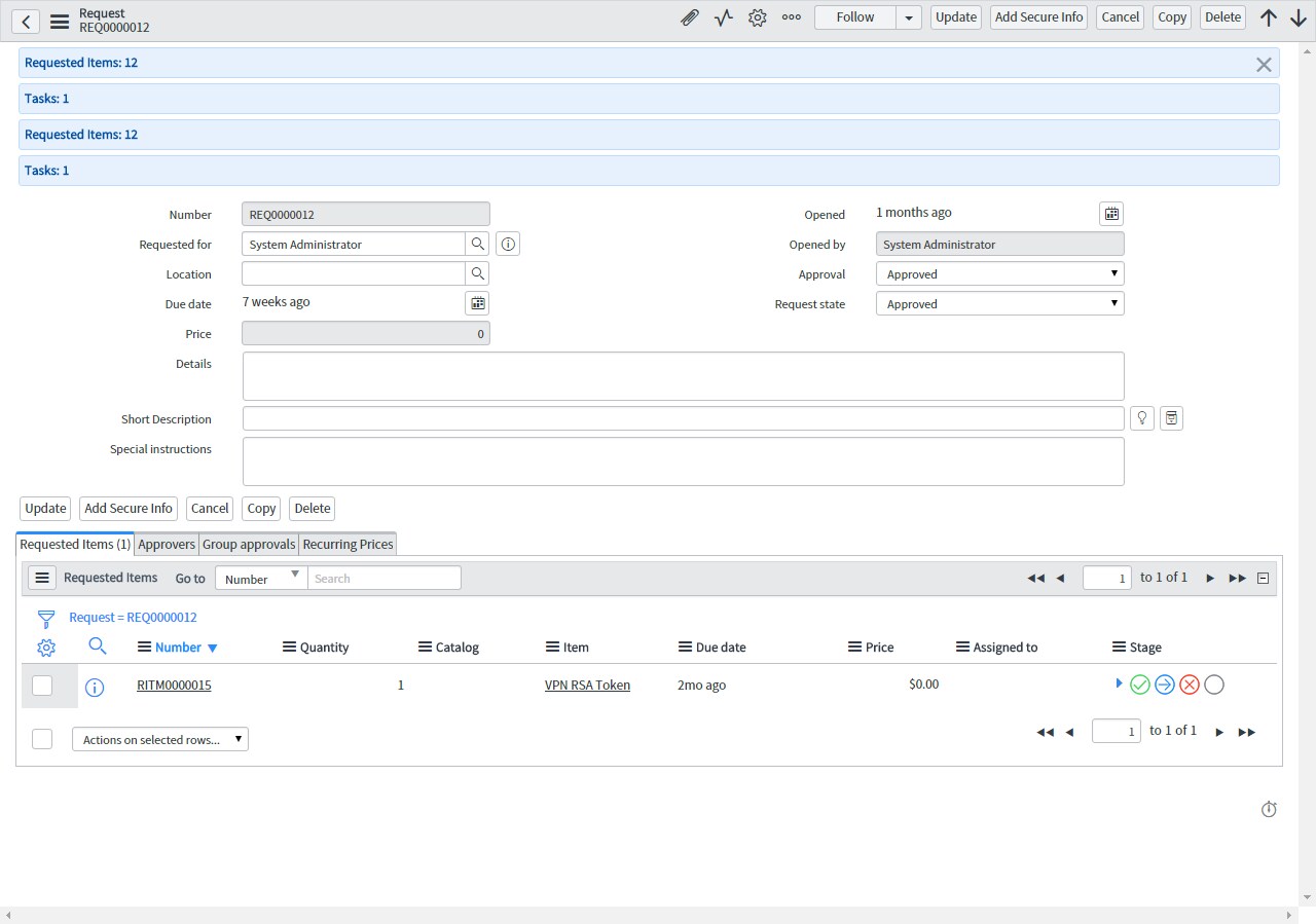This because all the requested item has the request as a parent. Now it will show a message on the request how many tasks it has.