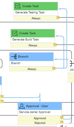 Once approved, there is a Branch task that leads to 2 "Create Task" activities.