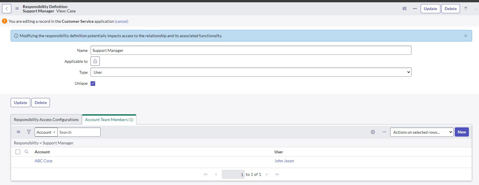 Step 1: Need to create a new responsibility definition for "Sales Account Manager" and mark it unique (Can add only person). Add John Jason to this.