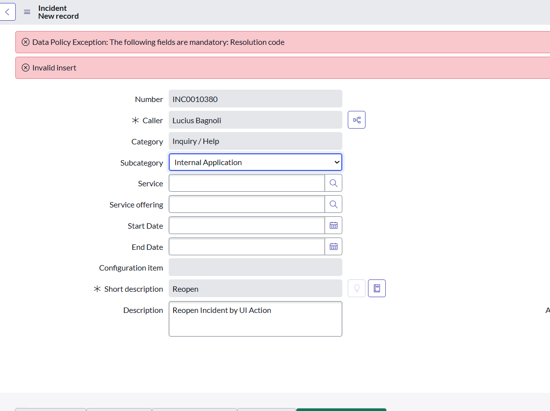 The screen shot say it's dat policy error only, did you check is any UI policy or data policy which working cross references n giving this error.