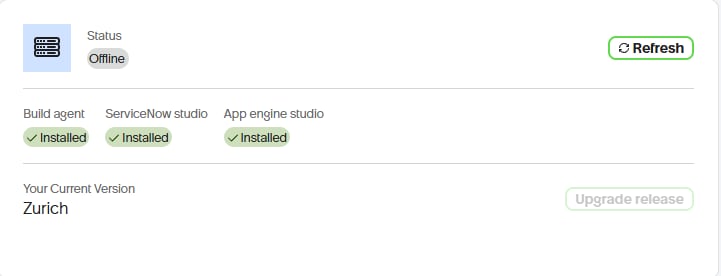 Developer Instance Offiine