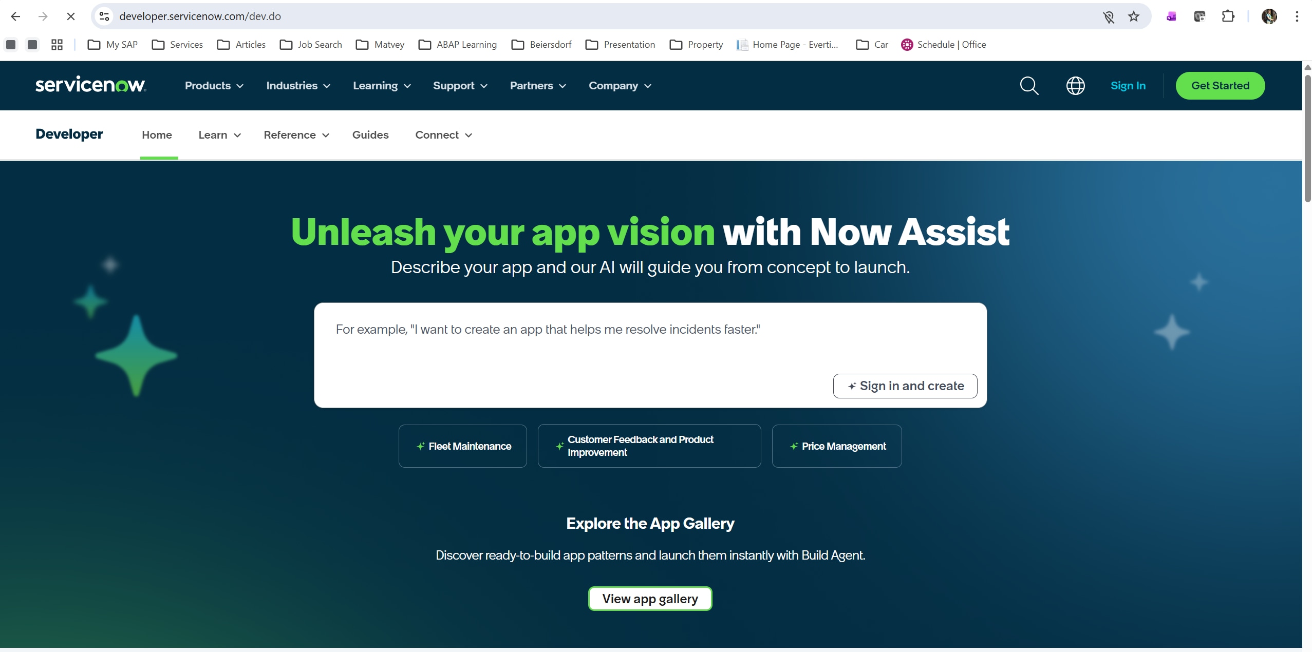 https://signon.service-now.com/sso and access the Developer portal from there by selecting the tile: