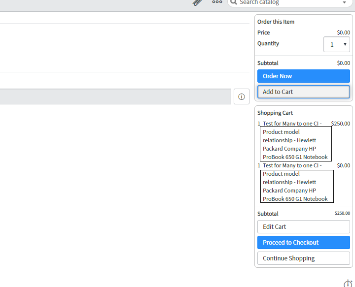 But being no expert in jelly script, I'm not sure how the OOB script is fetching the cart items into it. I tried to modify it by getting the expected variable's value into the script but am unsure about syncing the loop between the OOB script items=${jvar_cart_items} and mine, br.next() as highlighted in the screen shot. The code between the highlighted lines is something that I've added to the OOB also the display output line at the end. The output is the other attached screenshot. Since am not getting the sync between the loops, am able to show only one value being repeated(Same value in the cart) for the other catalog item in the cart too.
