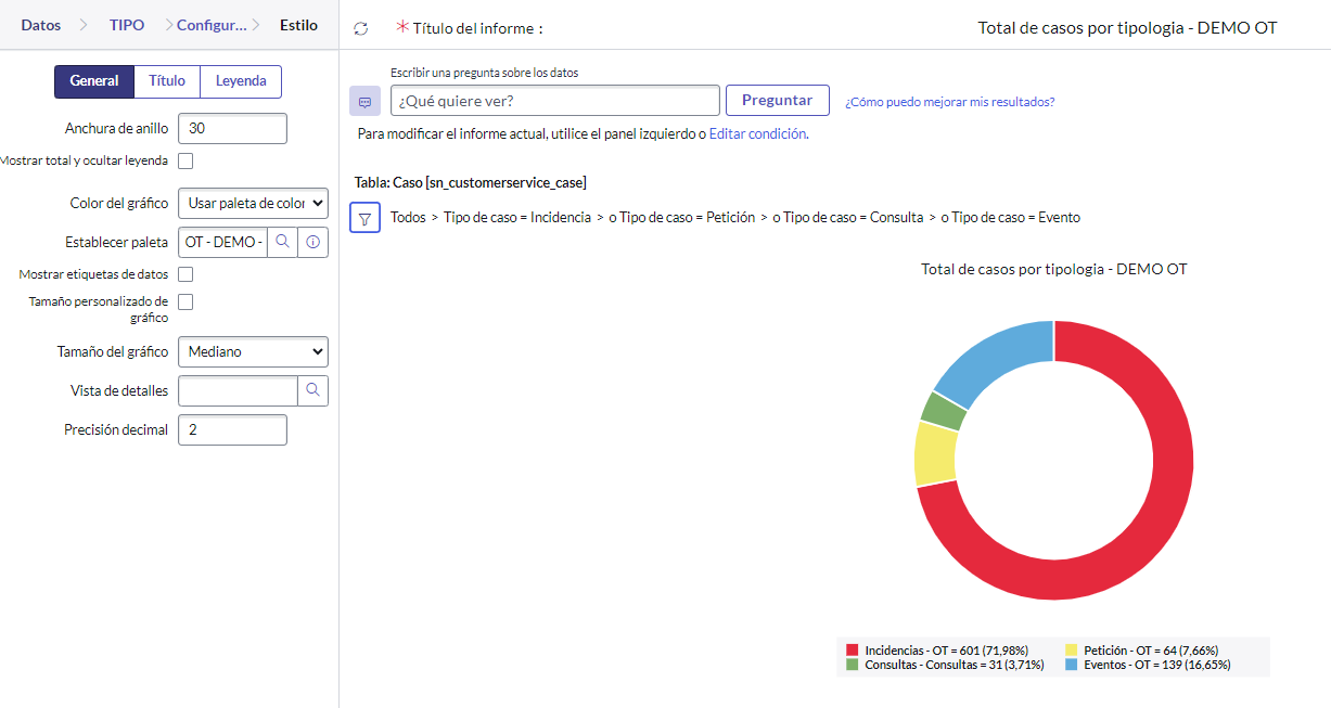 I am trying to edit a widget about the total cases by type but I need to put the total number and data label of each type of case.