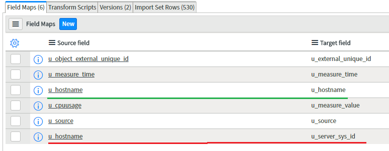 the issue is that I have in the import table a host name but I do need a sys_id, so I have to mach the host name from import table with the host name on SNOW and insert into the destination table the sys_id ..