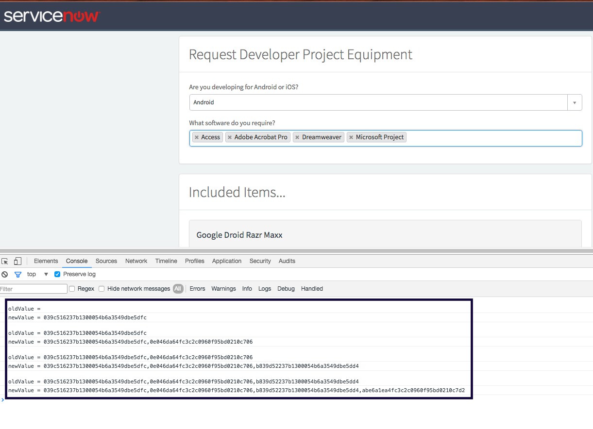 I have an onChange catalog client script on a list collector variable. I have made UI type to both to apply on service portal but it does not work. I am aware that some functionalities do not work on Service Portal side and need to be written in a different way. But i am not sure how to change the script for a list collector. Here is my script