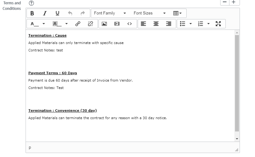 var example = "<br>Termination: Cause</br><br>Applied Materials can only terminate with specific cause</br><br>Contract Notes: test</br>";