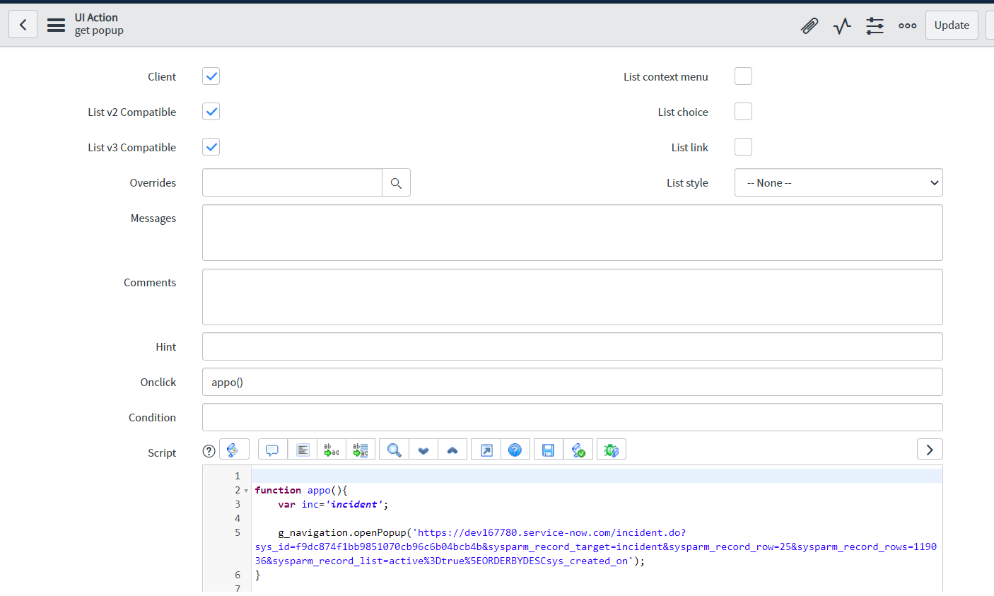 Thanks for pointing it out but for me it works. as a demo, incident form open in new tab when click on ui action button on the incident form. can you please guide me since g_navigation.openPopup and top.window.open both works , what is best practice to use.