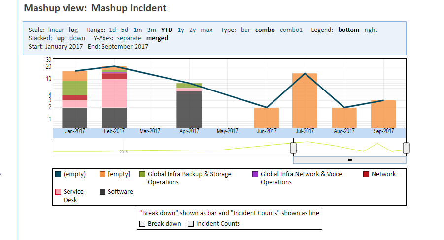 9) In the resulting chart, look at the top of the report and select Type: Combo and Y-Axes: Merged: