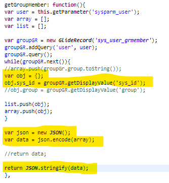 - I am trying to either populate this g_modal with choices of groups retrieved from the script include or only display reference to group for the selected user