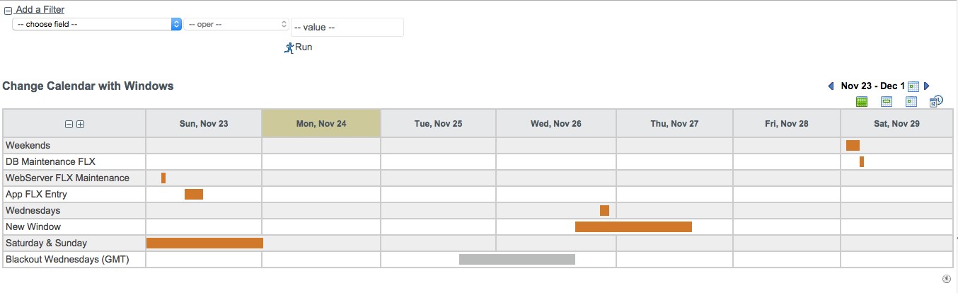I have been working on a Change Calendar which has a filter at the top of the page: