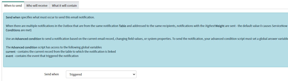 We need to trigger an notification from UI Action without event generation. In Notification the 'Send When' field is set as 'Triggered'.