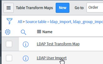 In System LDAP > Transform Maps, click the map you use when you sync: