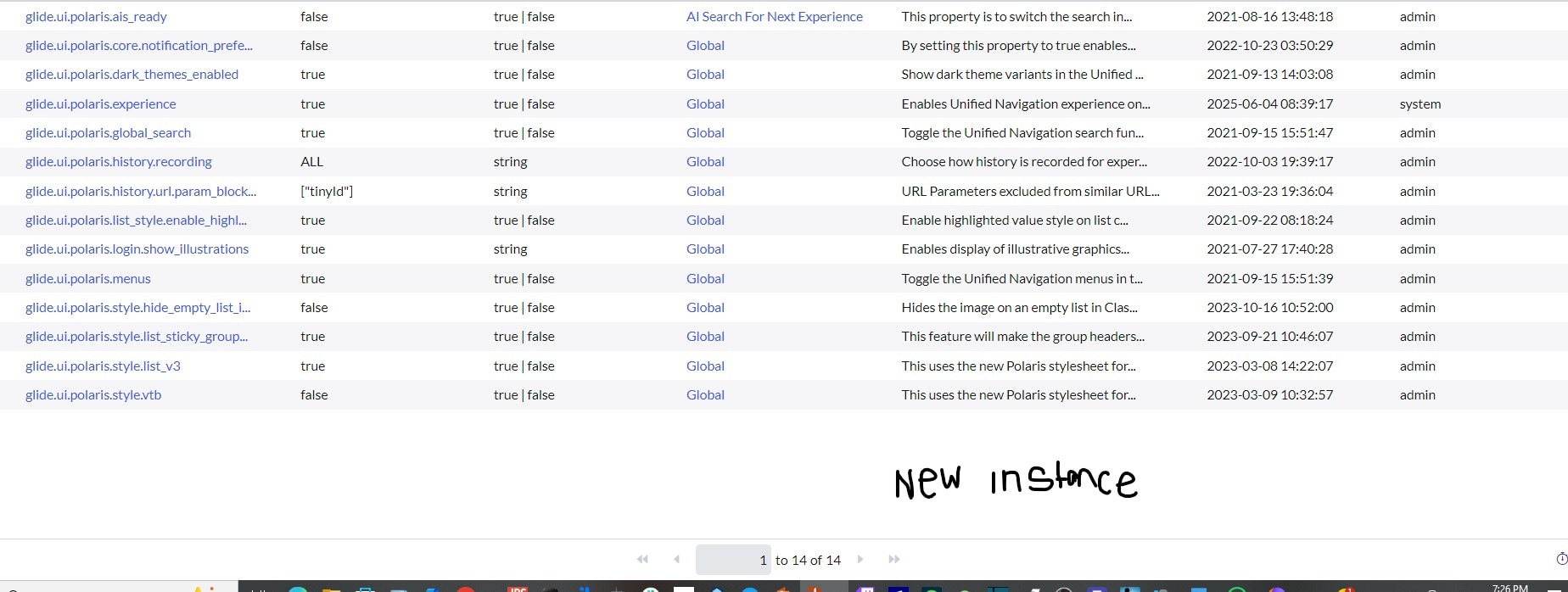 I am getting this pop-up message and several others when I go into my Knowledge module and select a catalog. When I go into the sys_properties.list I noticed that I have 5 additional glide.ui.polaris...... , records, and I am missing the custom Polaris file that I had created when trying to change my theme and header( I mostly deleted it when I tried to fix it, but not remembering what I did now). I compared my sys_properties.list to a brand new instance with no changes, and I am not sure what to do to correct it as I am missing some records and not sure how to get them back. Should I download from the new instance? I went into the Service Portal, and I saw a message stating undefined highlighted in red. Not sure how this all went wrong. I was trying to change the banner and the background colors, and it did not work. I have attached screenshots of my current instance with the issue and a brand new instance, and the screenshot in the Service portal.