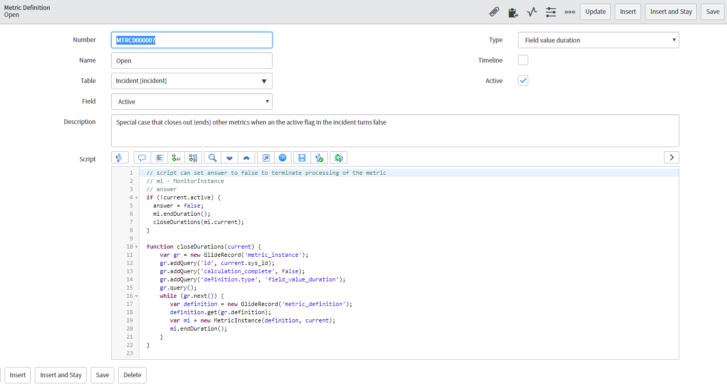 I have created a metric which store duration how much time a assignment group is taking. but this metic should end when ticket is closed