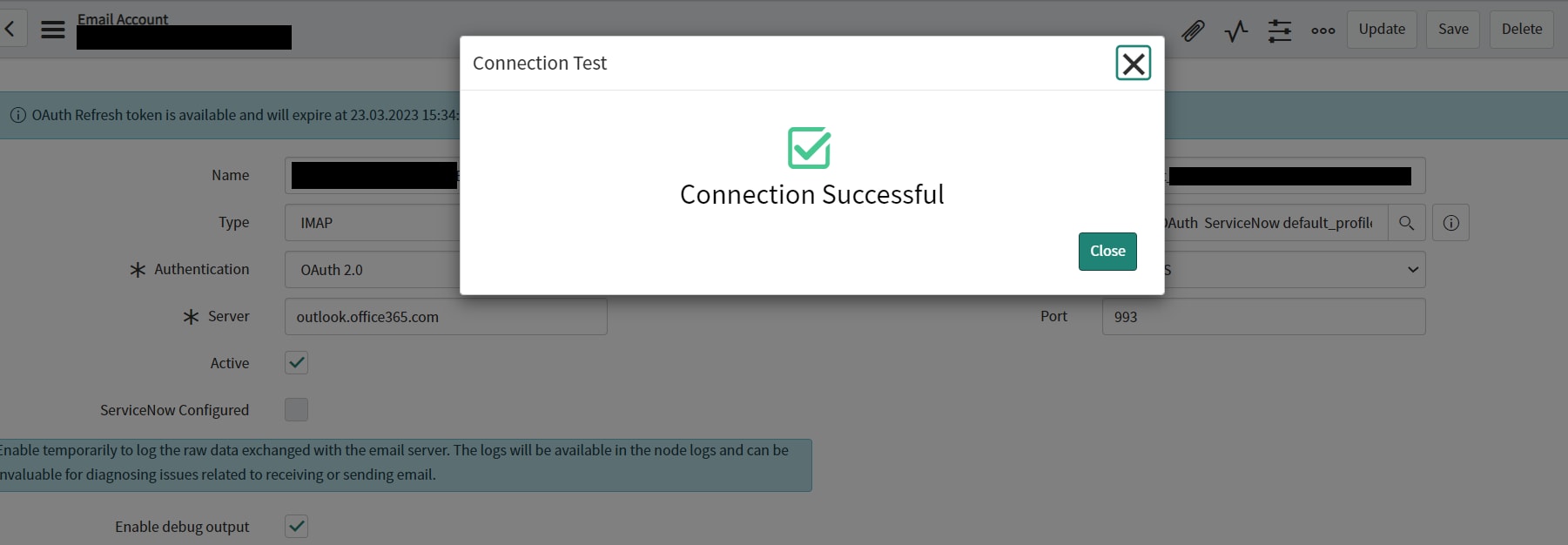 We have followed all the steps in all the articles that we found to configure IMAP with Oauth 2.0, not only in ServiceNow side but also in Office 365 side.