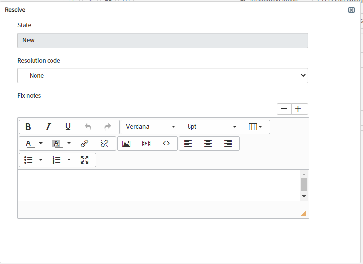 In problem workflow, I edited the form "Resolve dialog form view" and want to be displayed as pop-up on "Resolve" button.
