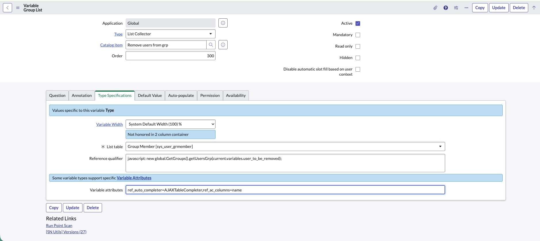 variable attributes: ref_auto_completer=AJAXTableCompleter,ref_ac_columns=group,ref_qual_elements=user_to_be_removed