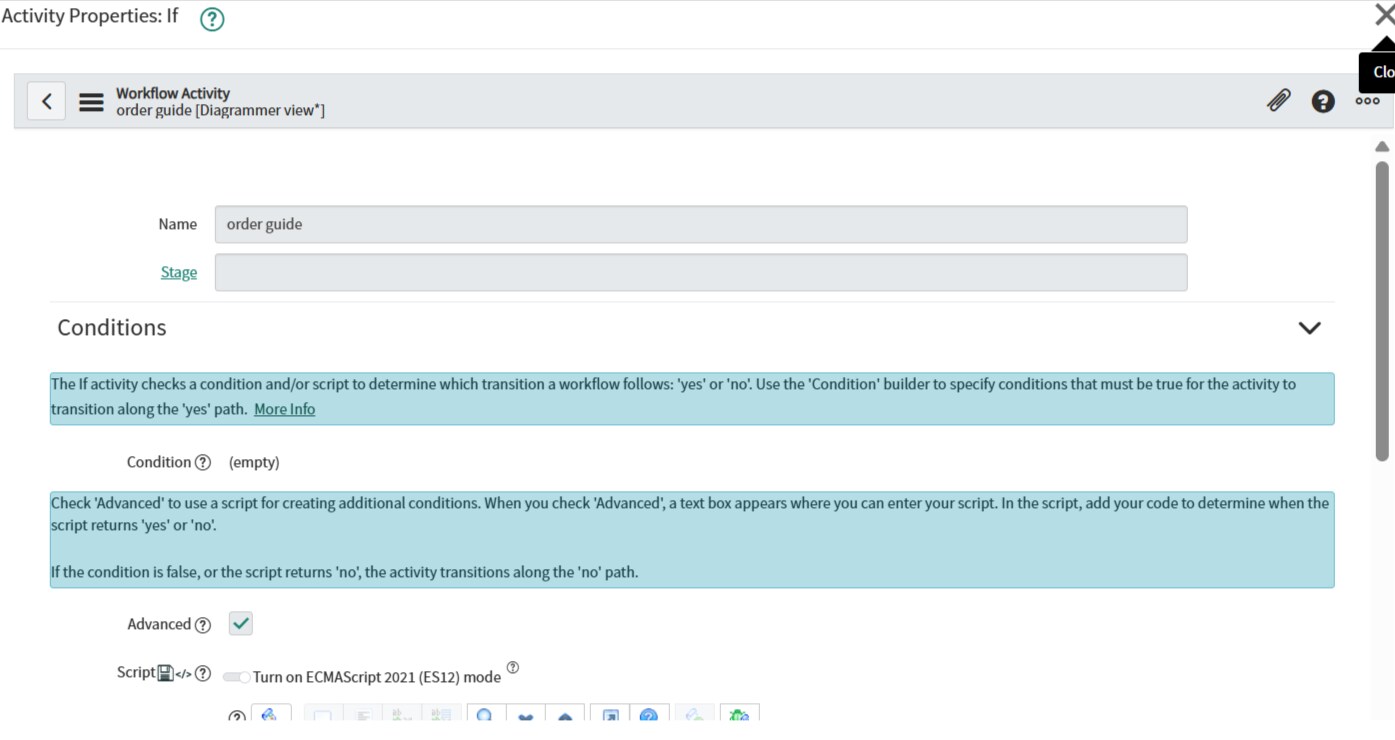 Note: If your "Approval Action" activity is set to "Mark Task as Approved", it will bypass manual approvals. Ensure that for the Equipment Order Guide path, the flow hits the Approval - Group activity instead of a "Set Values" that marks it as approved.